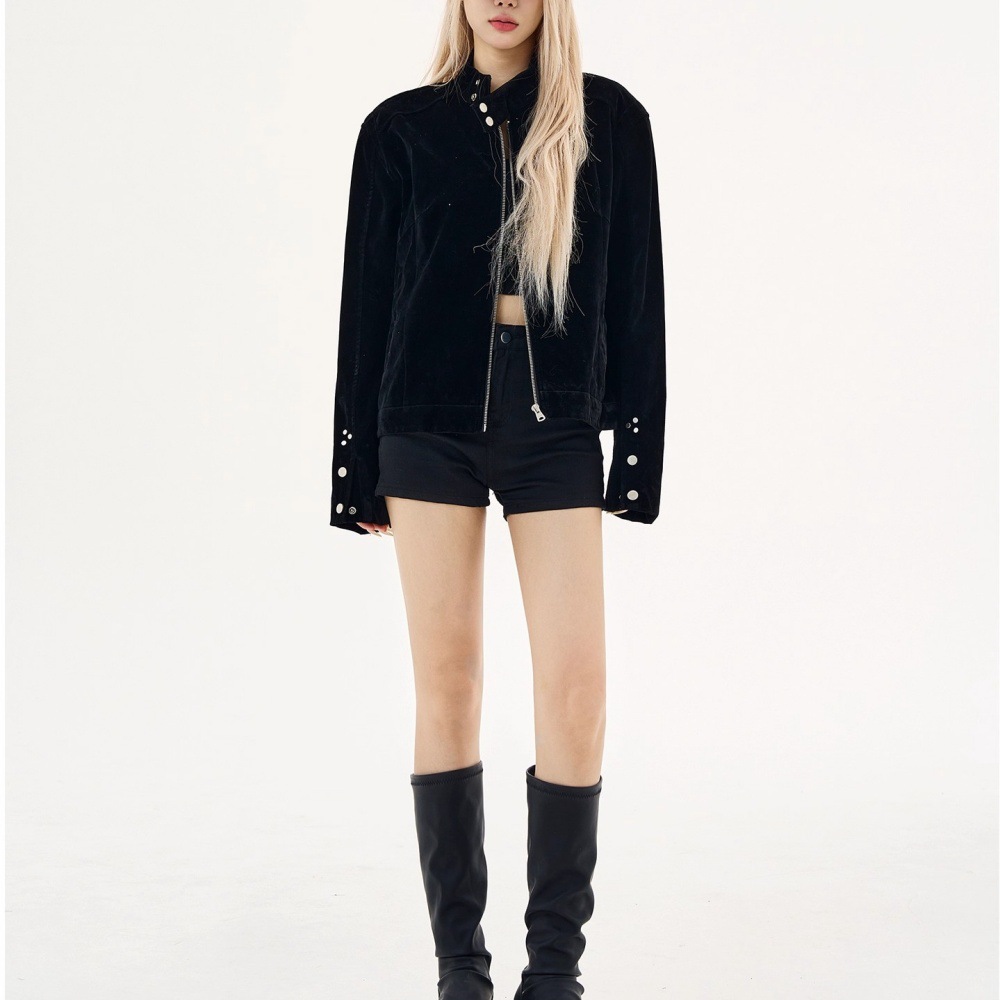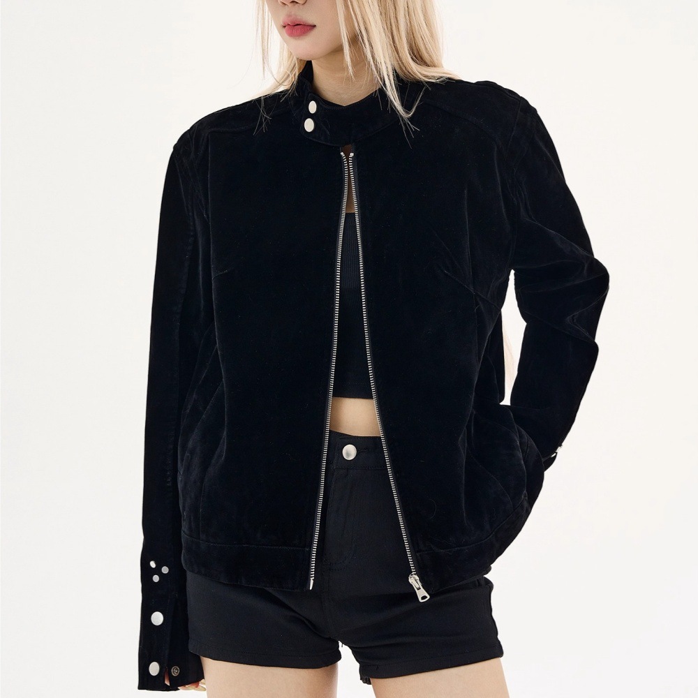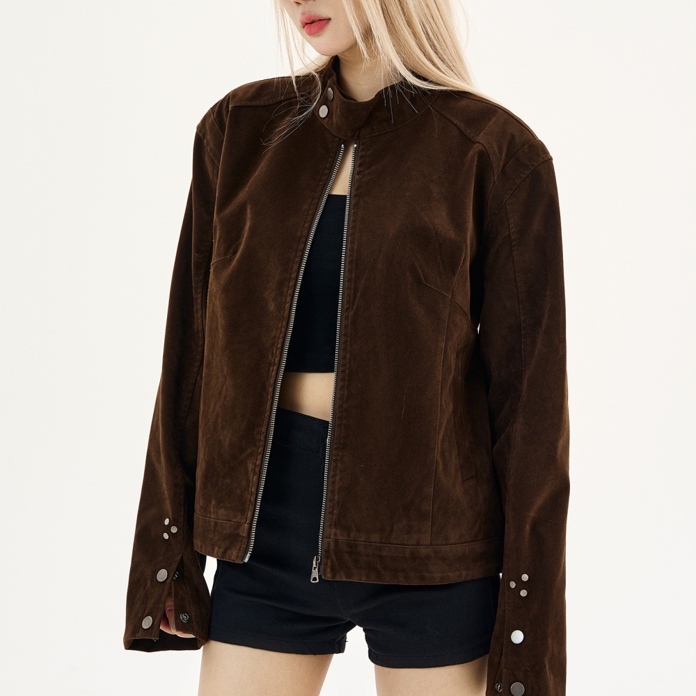Functional Details: Stand collar, zipper placket, and button accents combine practicality with street-style aesthetics.