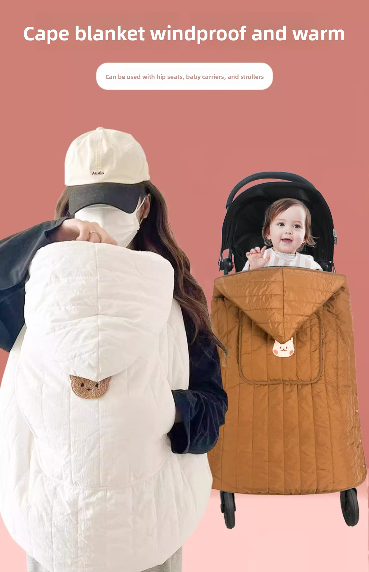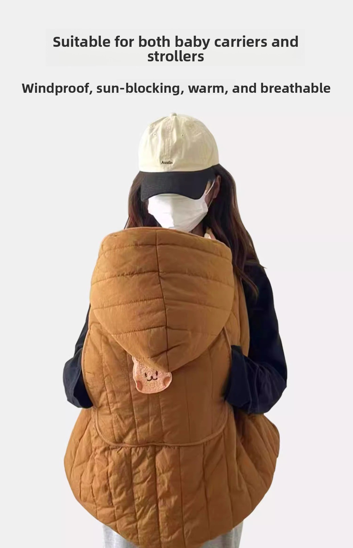 Windproof Design: Provides effective protection against wind and cold for babies during outdoor use.