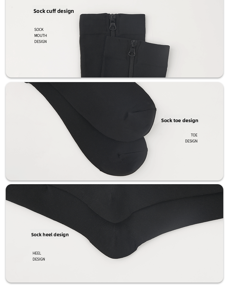 Zipper Feature: Convenient front zipper allows easy wear and removal without overstretching the sock.