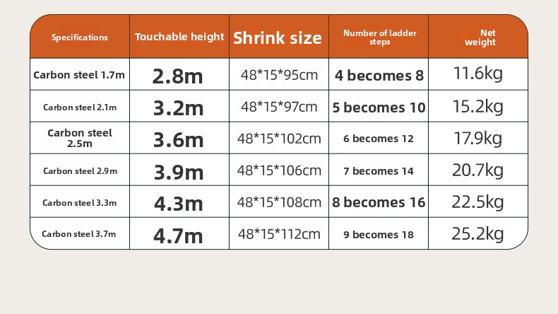 Telescopic Design: Extendable ladder with adjustable height for versatile use in various spaces.