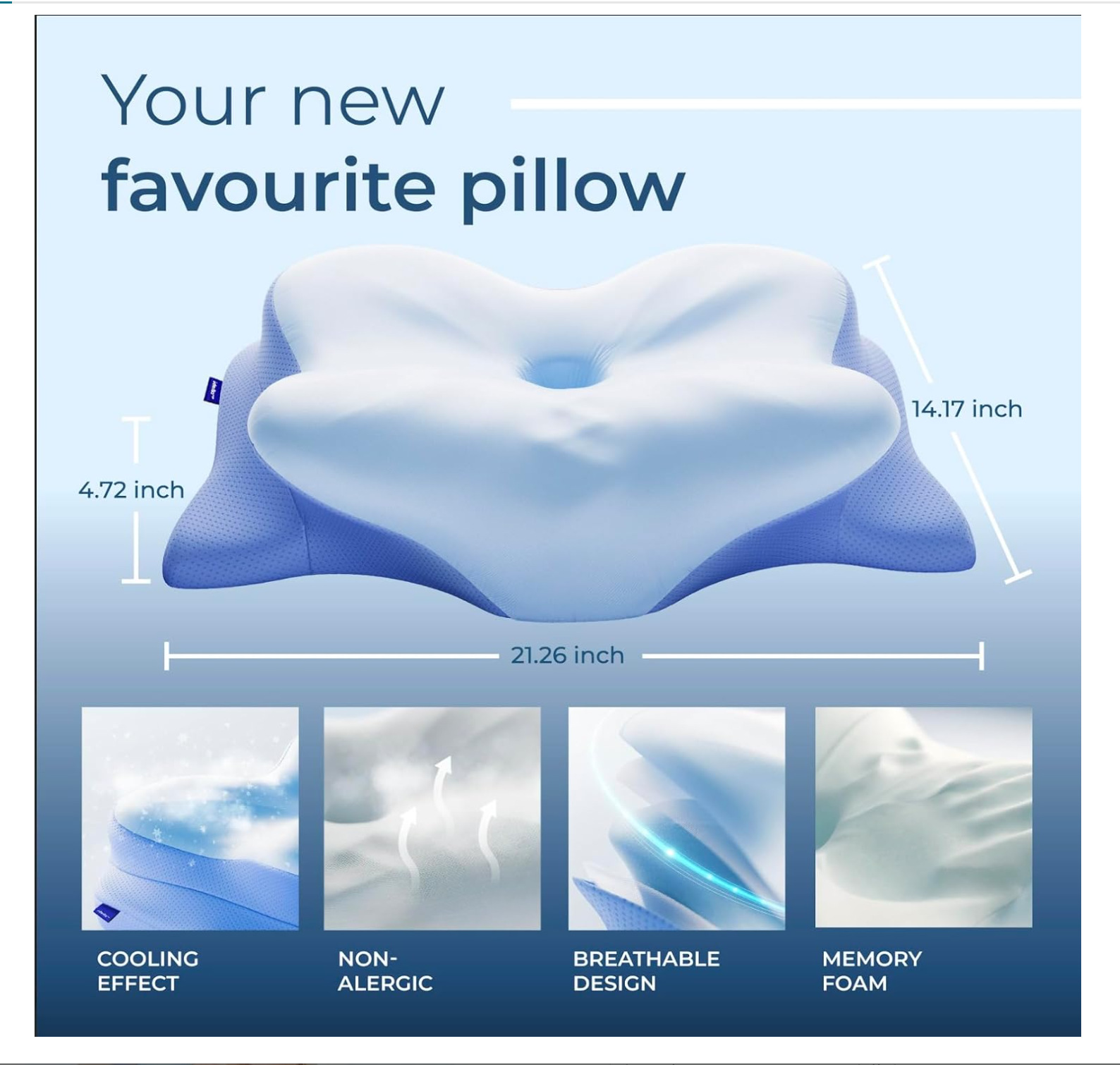 Ergonomic Design: Butterfly-shaped contour provides optimal cervical support and alignment during sleep