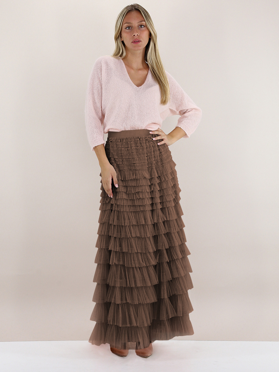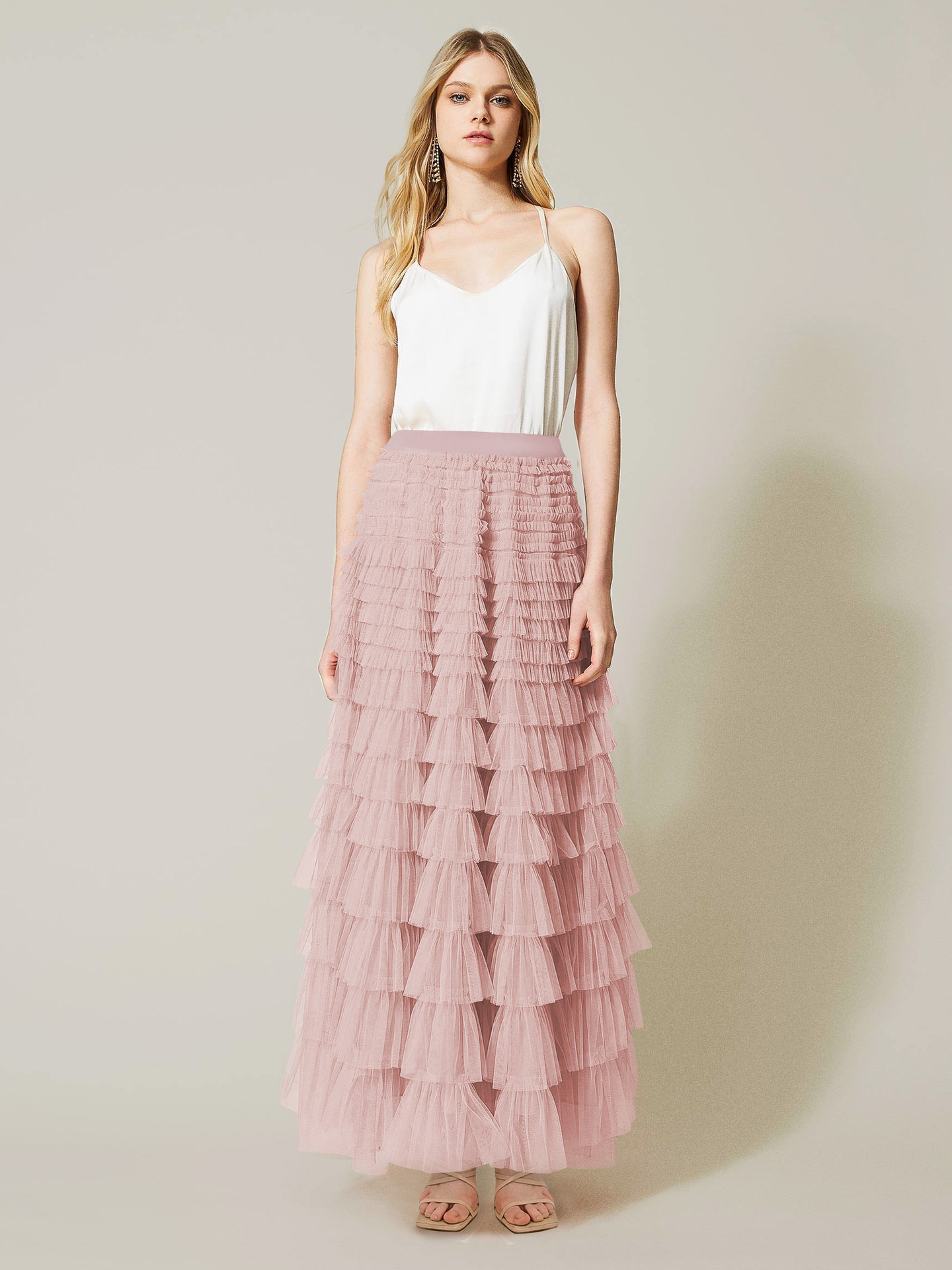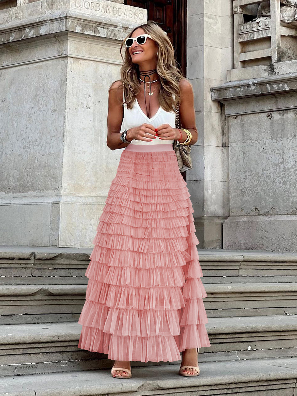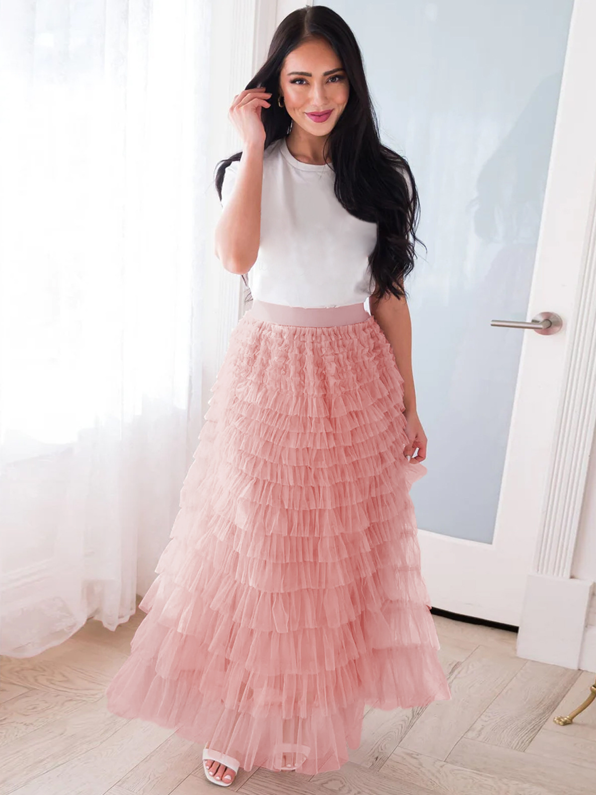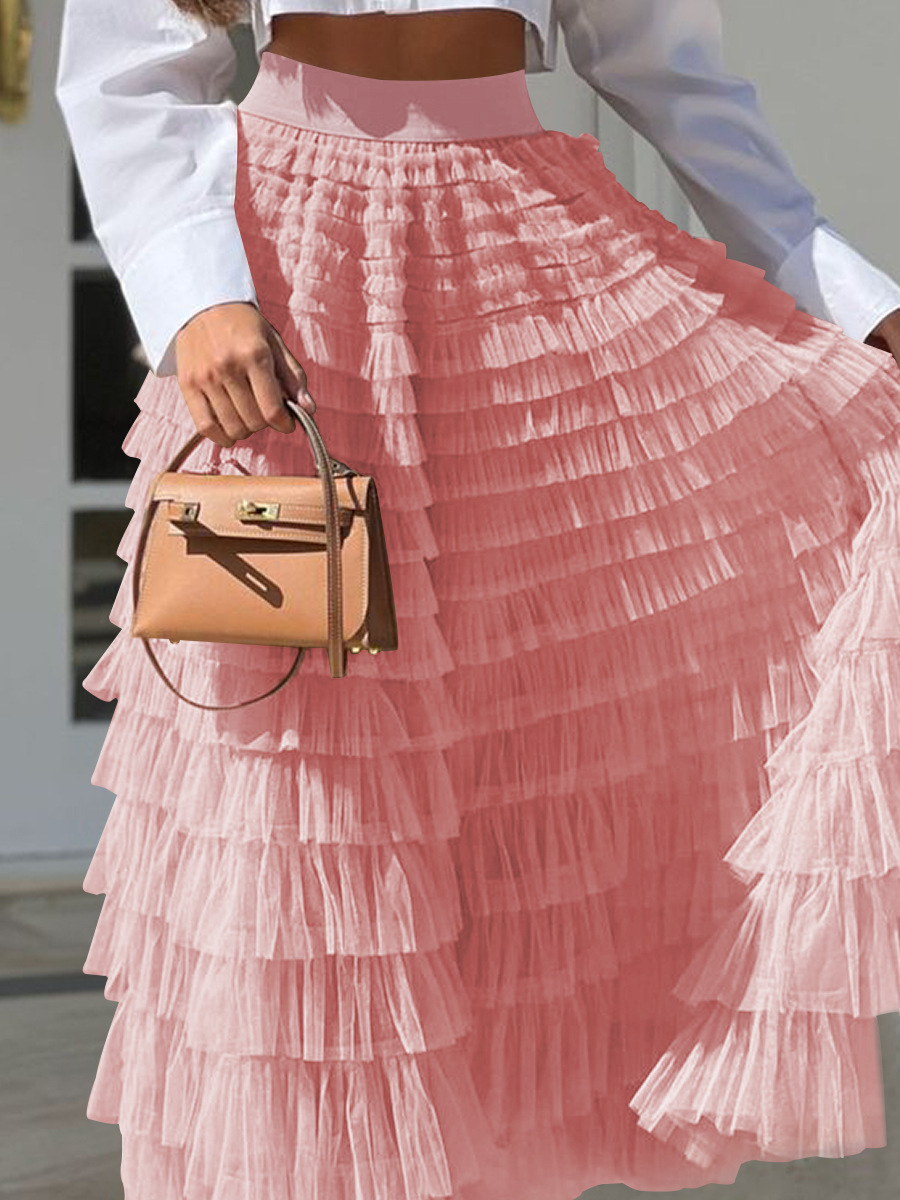 Elegant Design: Features a stylish cake skirt silhouette with layered mesh fabric for a feminine and graceful look.