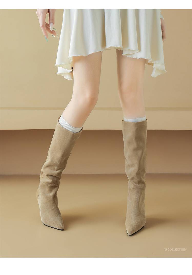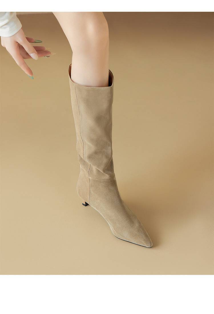Stylish Design: Fashionable western boots with a trendy pointed toe and chunky heel.