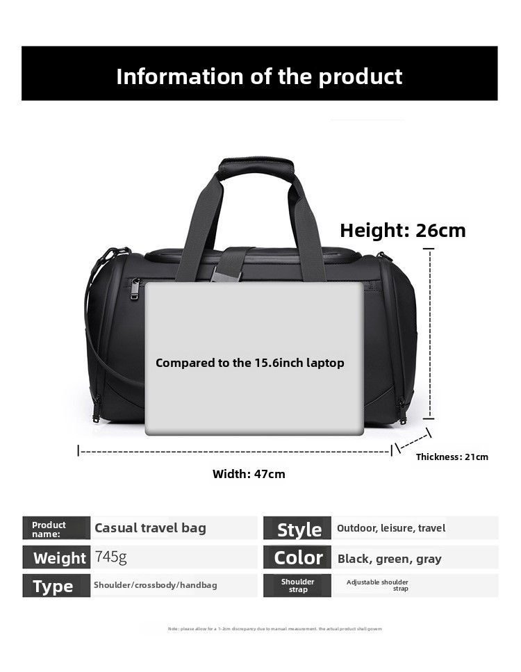Large Capacity: Spacious interior for travel and sports essentials