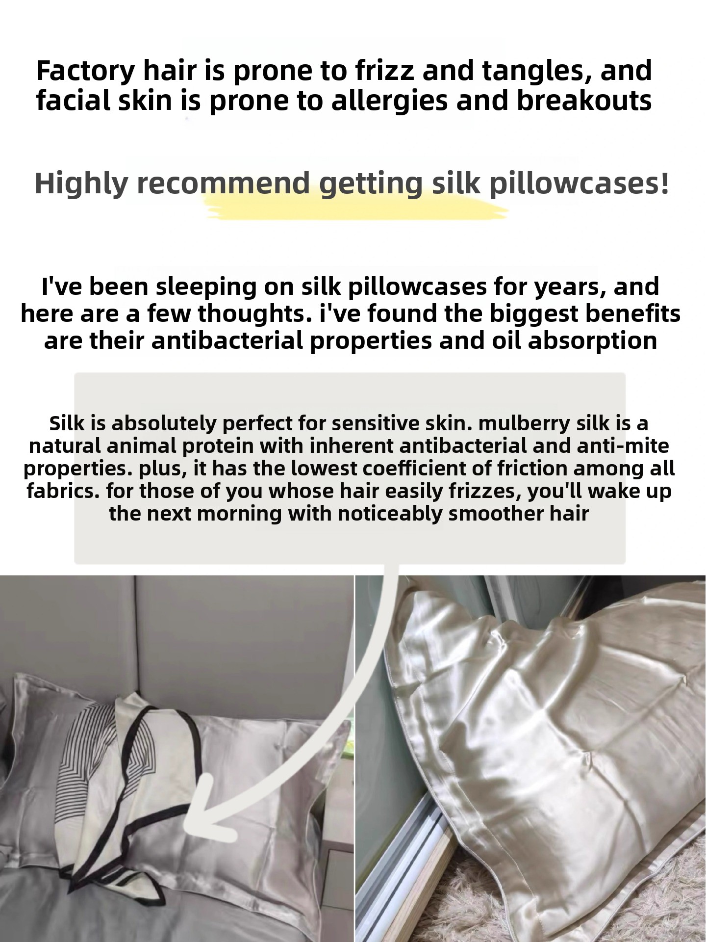 Smooth texture reduces friction, helping prevent hair breakage and skin wrinkles