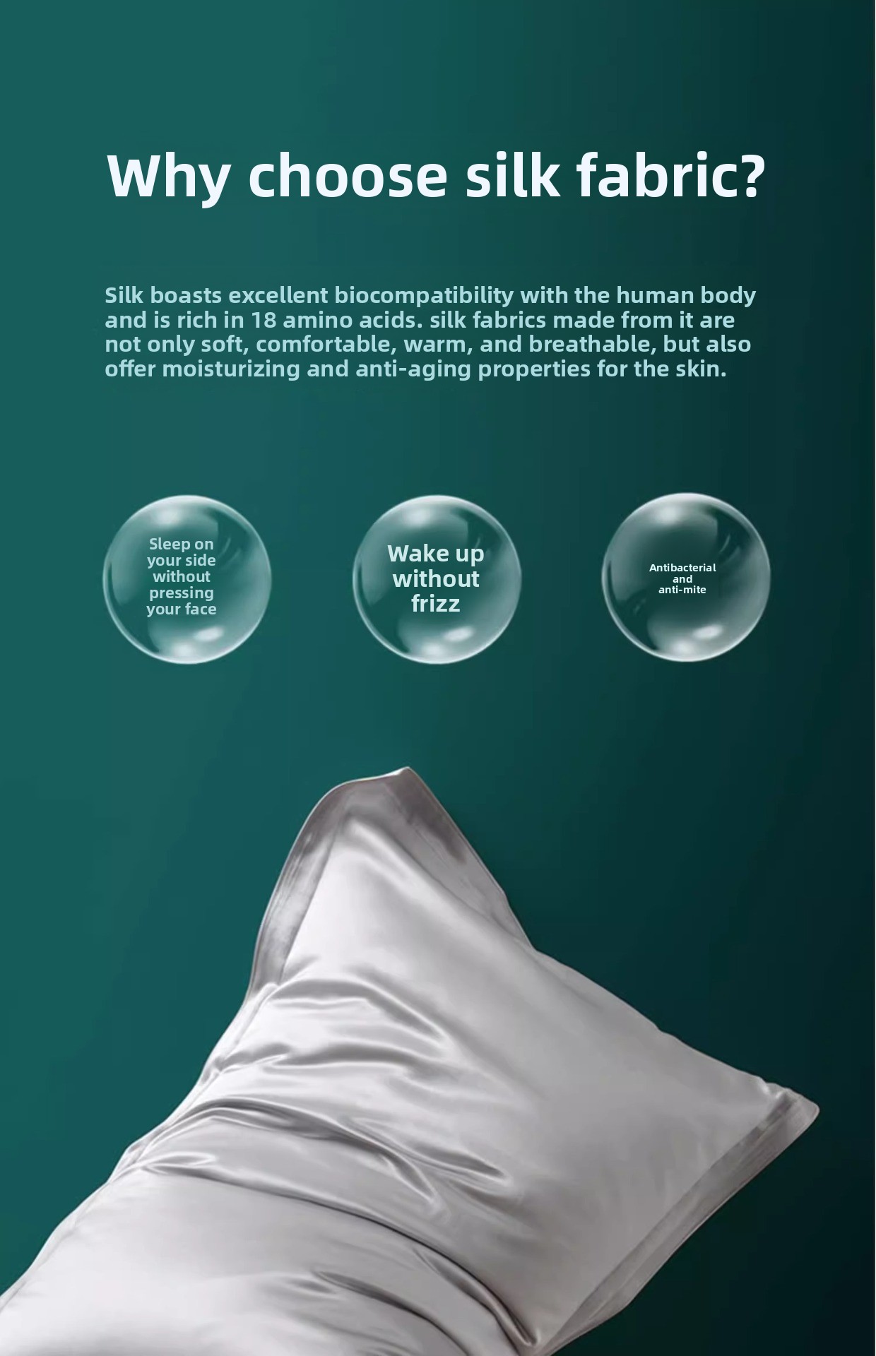 100% mulberry silk material offering natural hypoallergenic and skin-friendly properties
